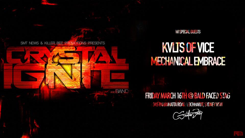 Until recently known as SNUFF, this band is the most established out of the ones I saw on Saturday. They’re also the band I have the most connections to – I went to the Australian Institute of Music with the Tormentor, who handles the electronics on stage, and I’ve taken a couple of singing lessons with Alicia to help develop my clean vocals. The band is originally a duo, but they now perform with a drummer as well, which sometimes feels unnecessary, but does give a real kick to some of the songs, especially following a band without drums like Z(Cluster). And after saying so much about INfest8 not being much to look at on stage, I need to quickly point out how the Tormentor, who doesn’t play guitar, handles his electronic rig so much better – I have seen him CLIMB TO THE CEILING on his custom setup! And he is always rocking out, regardless of whether or not he’s actually twiddling a knob. He was doing this even when he was performing solo, and I just love it!